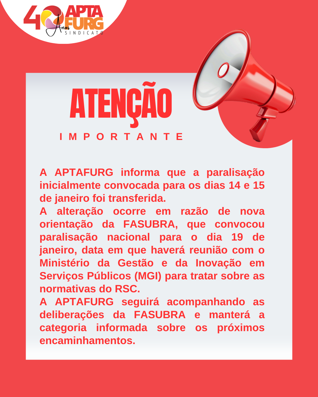 • Post instagram comunicado importante simples em vermelho e branco